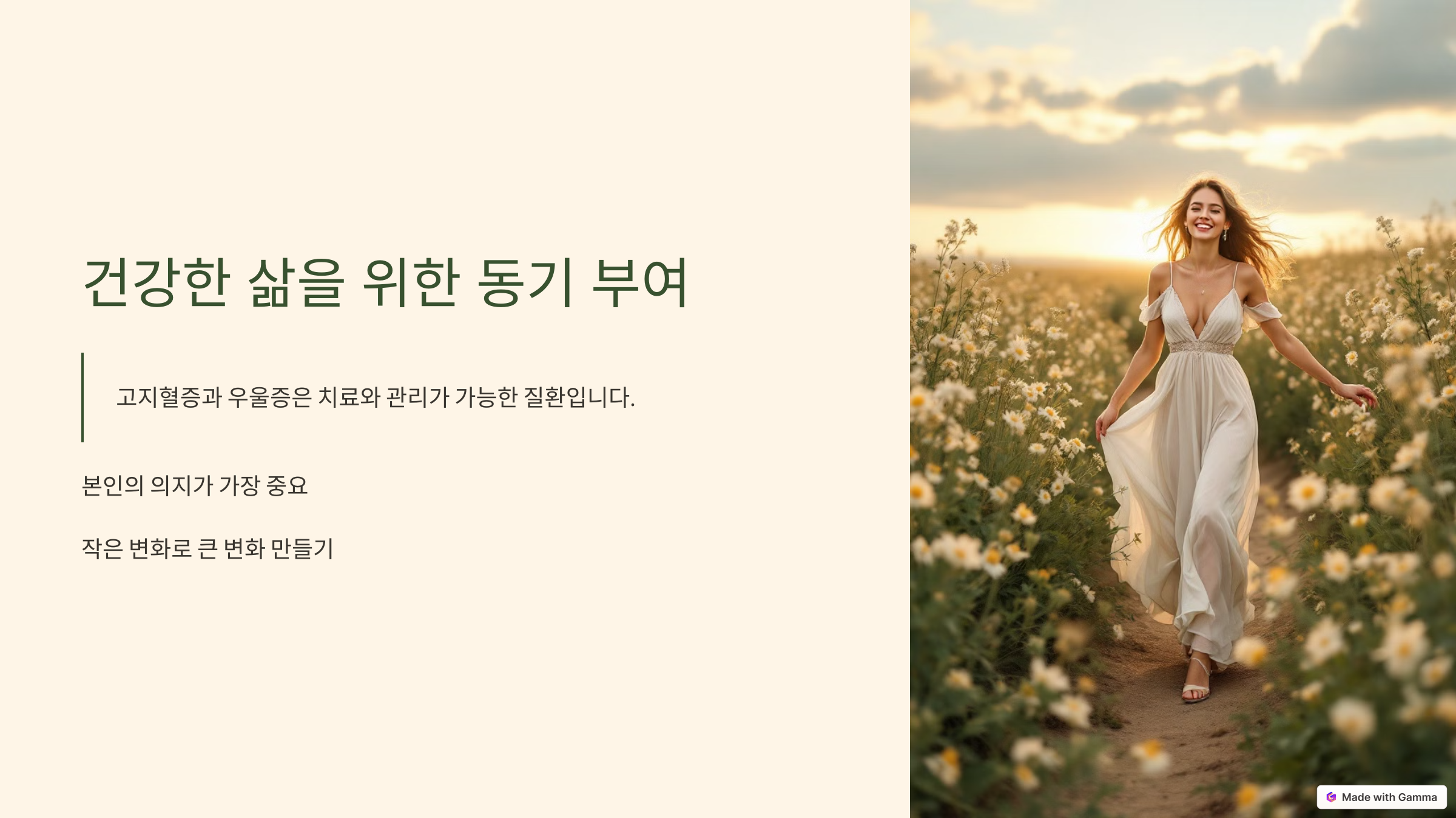 하지만 이를 위해서는 본인의 의지가 가장 중요합니다. 작은 변화를 통해 큰 변화를 만들어낼 수 있습니다.