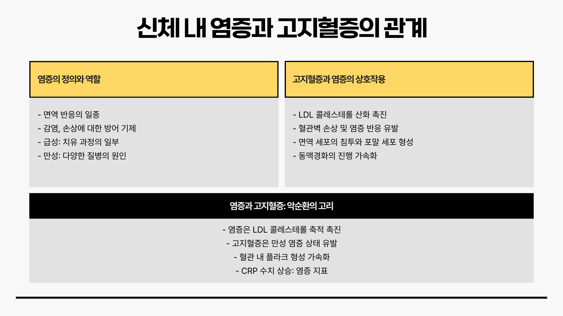 신체 내부에서 발생하는 염증이 고지혈증을 악화시키고,