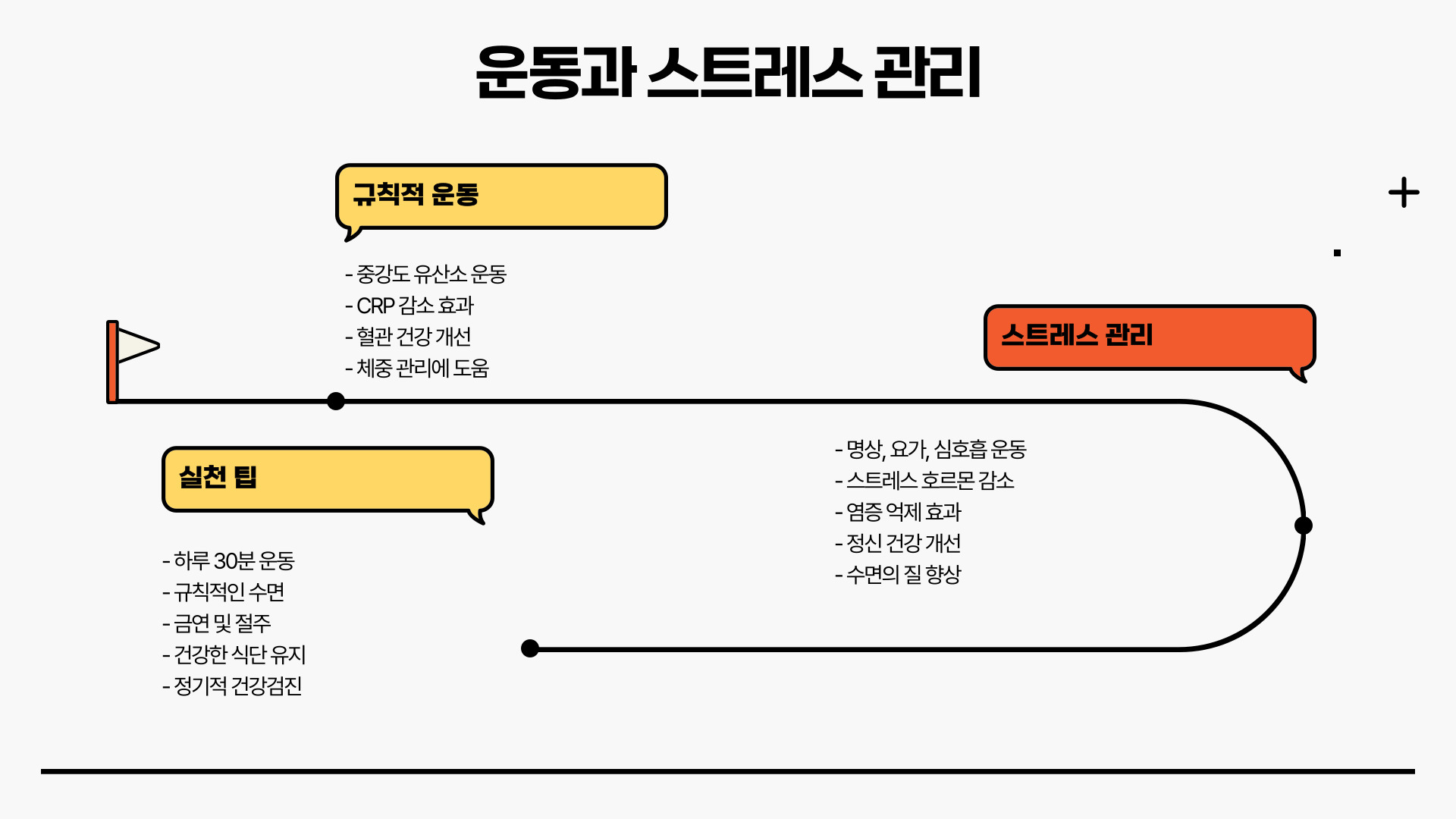 운동과 스트레스 관리는 염증 감소에 필수적입니다.