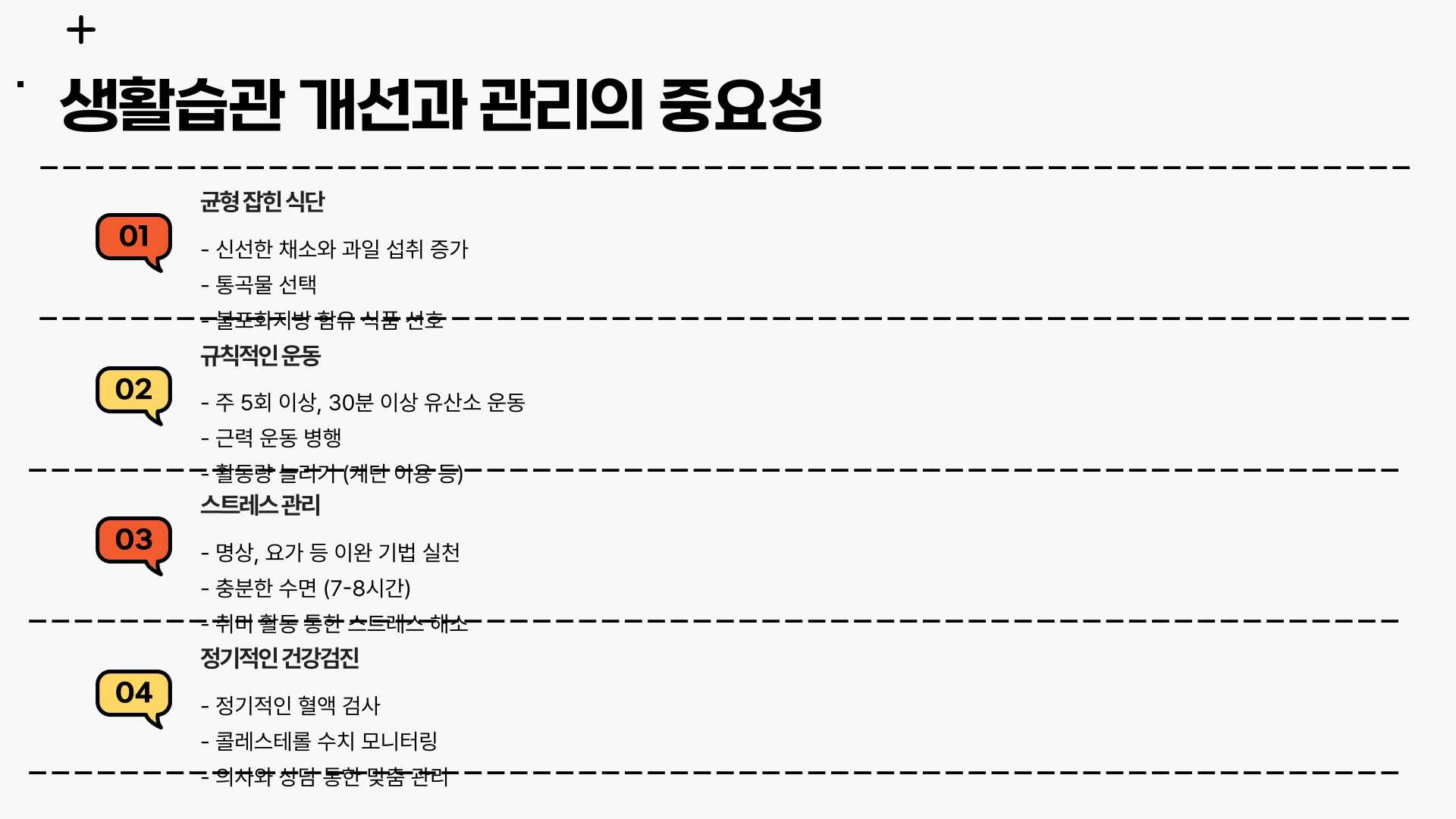 식습관, 운동, 스트레스 관리 등 일상에서 작은 변화를 만들어보세요.