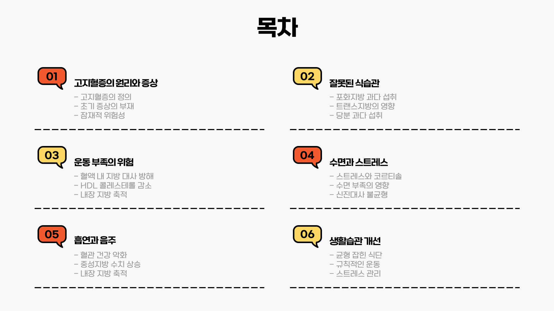 우리가 무심코 하는 일상적인 행동들이 고지혈증의 원인이 될 수 있답니다.