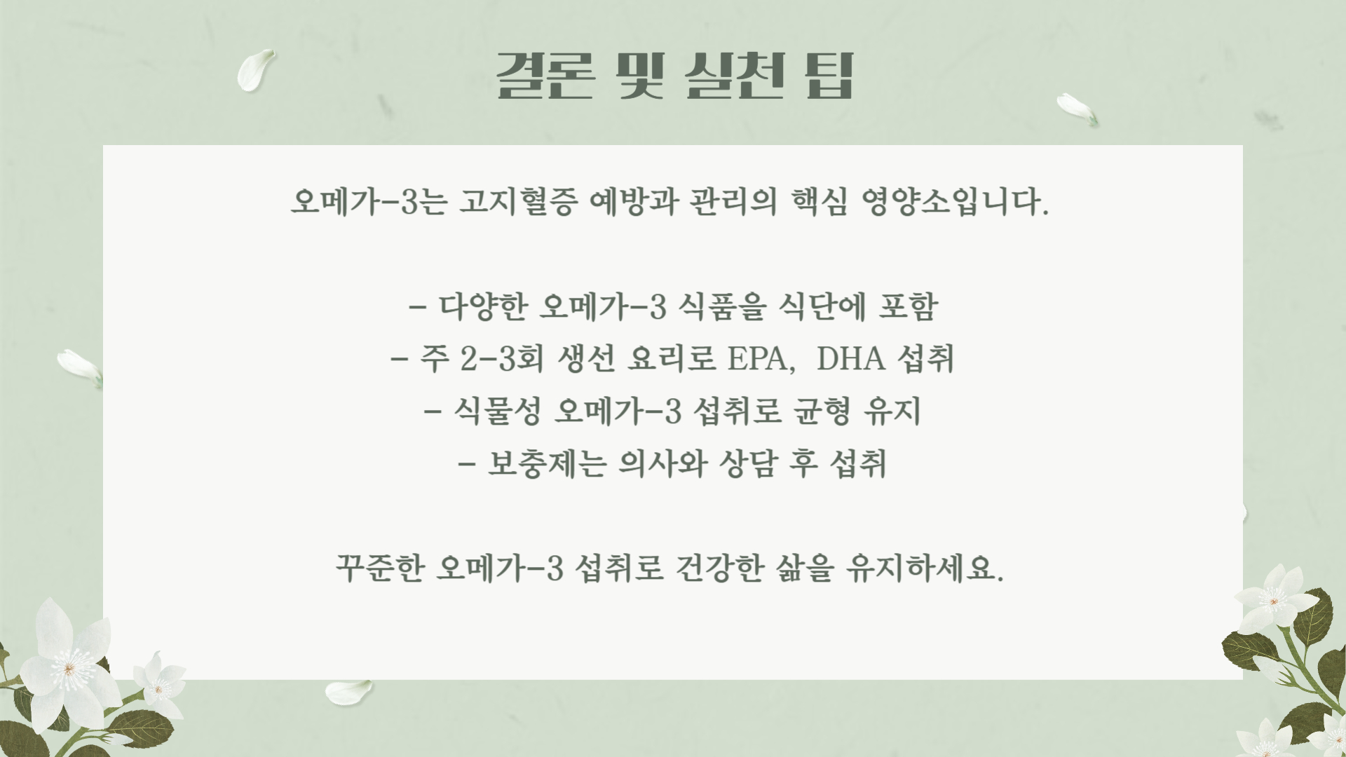 이 글에서는 오메가-3의 효능, 섭취 방법, 그리고 고지혈증 예방을 위한 실천 팁을 알려드립니다.