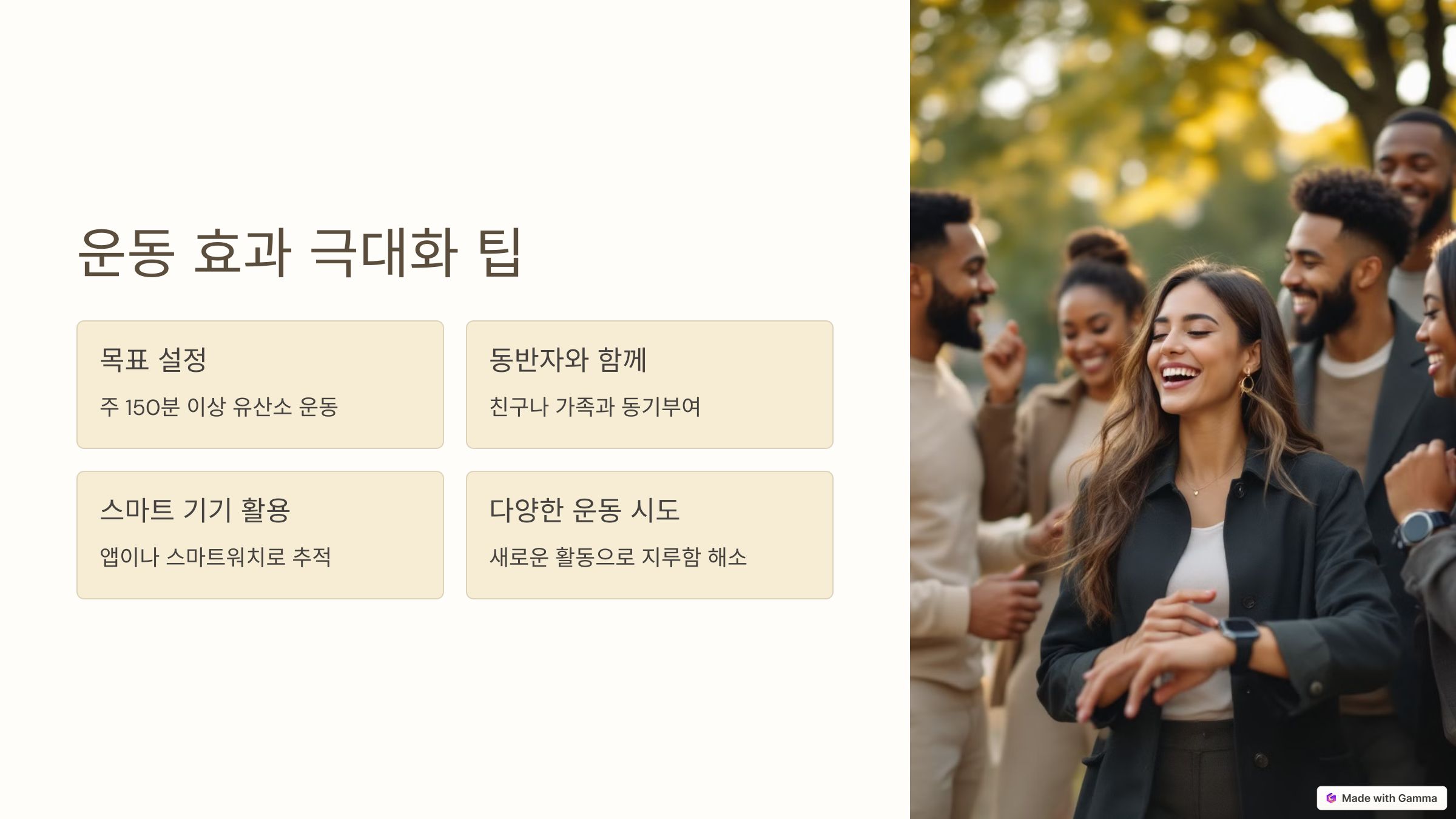 - 동반자와 함께하기: 친구나 가족과 함께하면 동기부여가 됩니다.