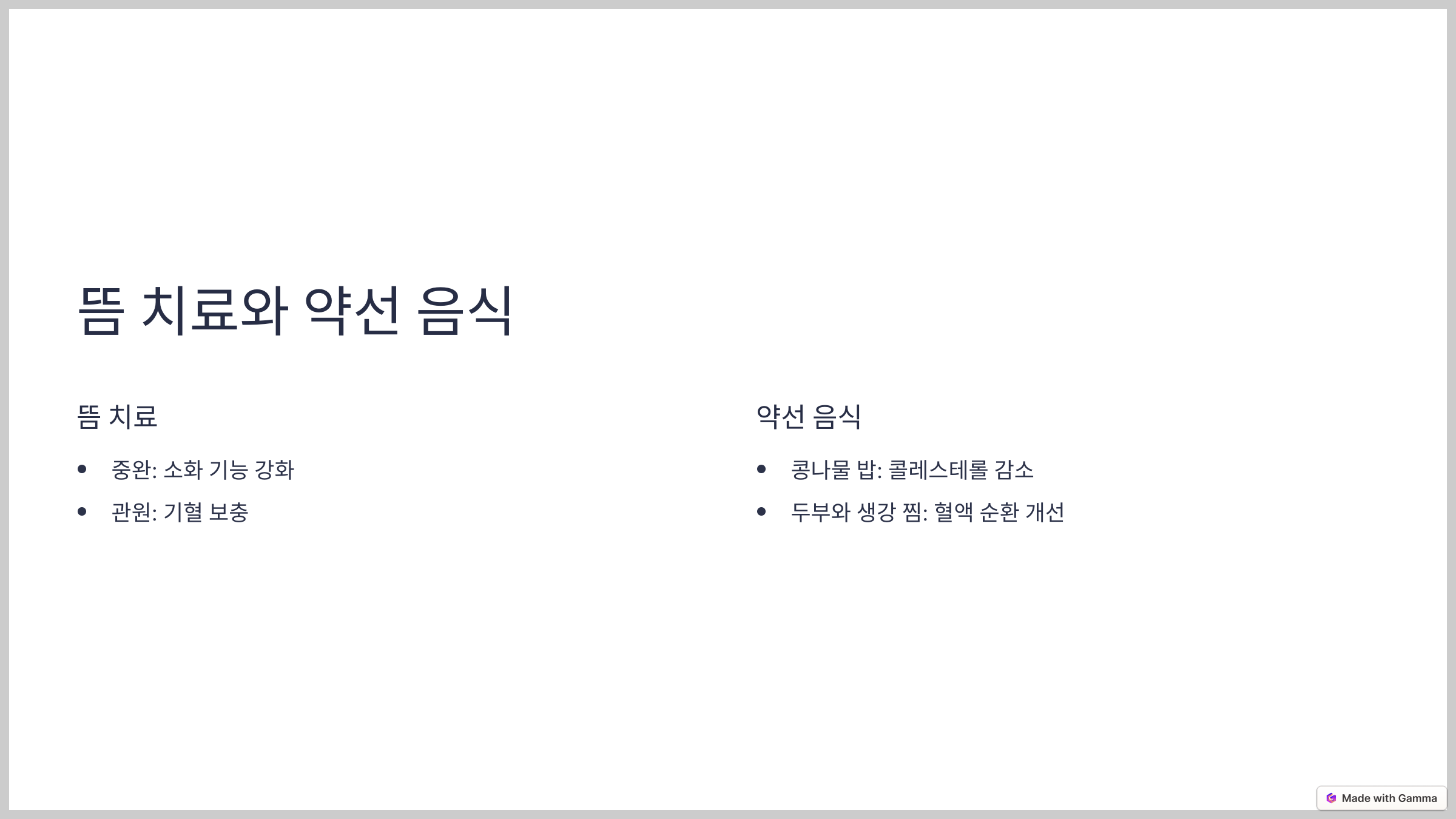 - 한방 요법은 보조 요법으로, 약물 치료와 병행할 때 효과적입니다.