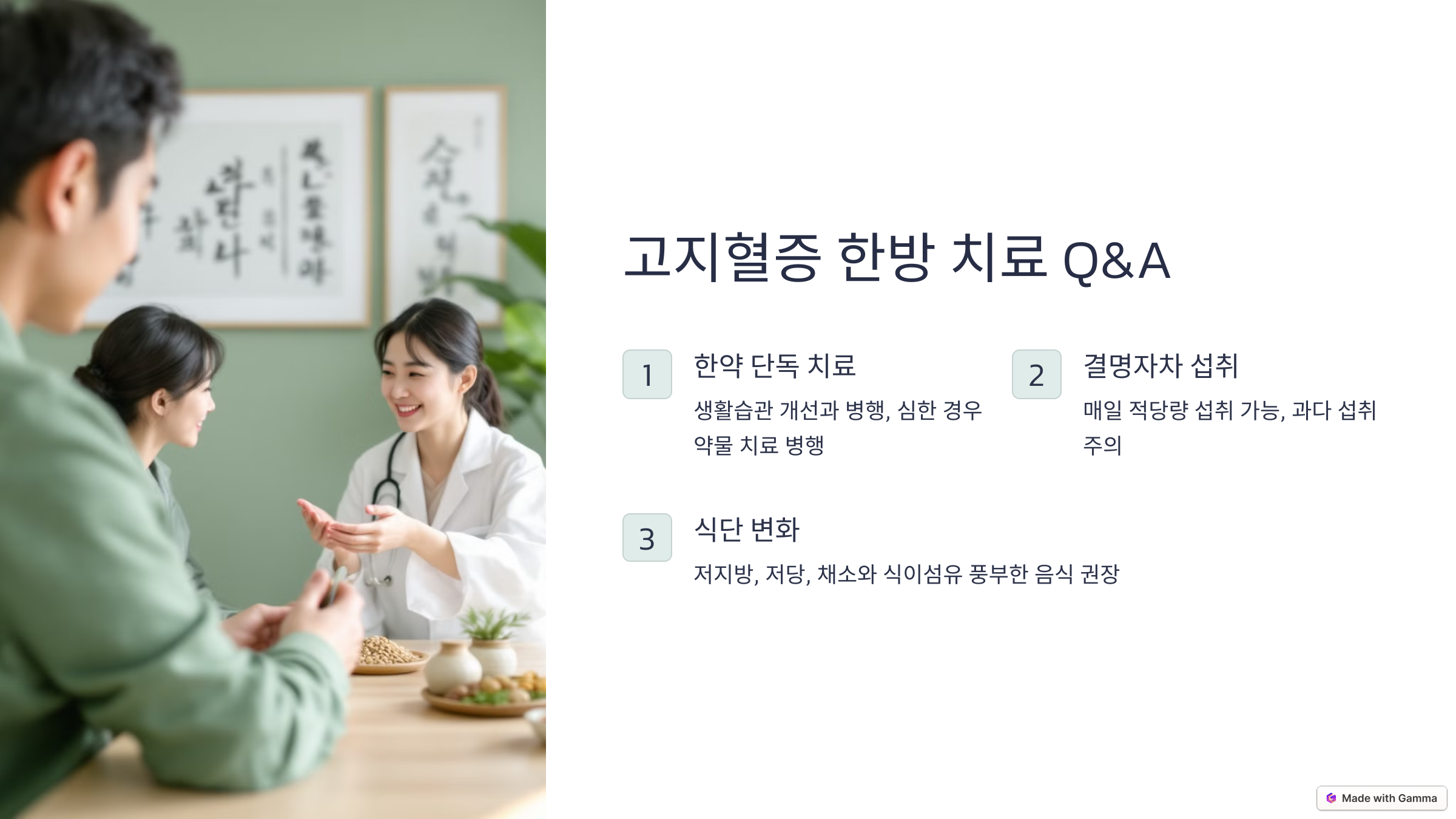 Q1: 한약만으로 고지혈증을 치료할 수 있나요?