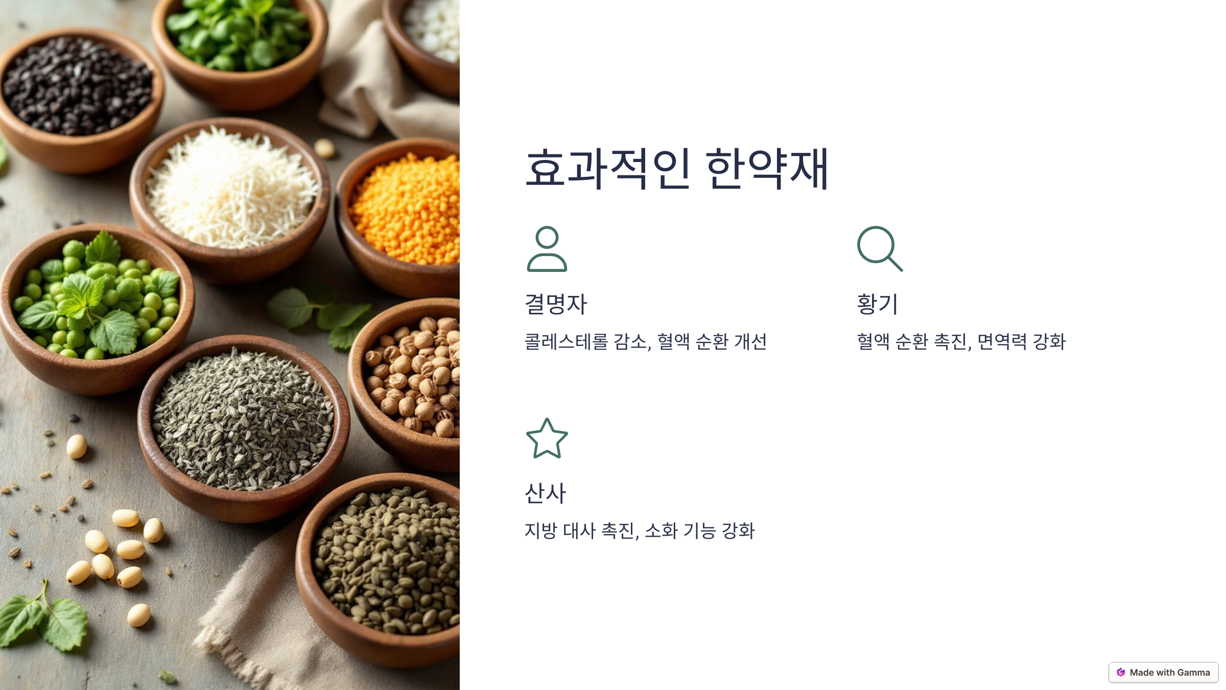 한방 요법을 생활 속에 적용하여 건강한 혈액 순환과 콜레스테롤 관리를 실천해 보세요! 🌿💪