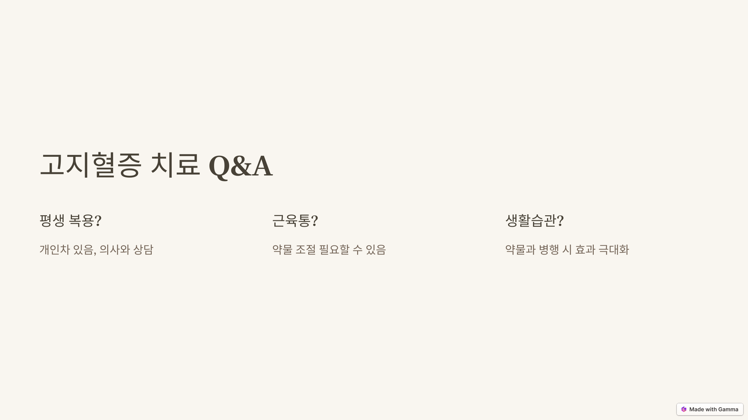 Q1: 고지혈증 약물은 평생 복용해야 하나요?