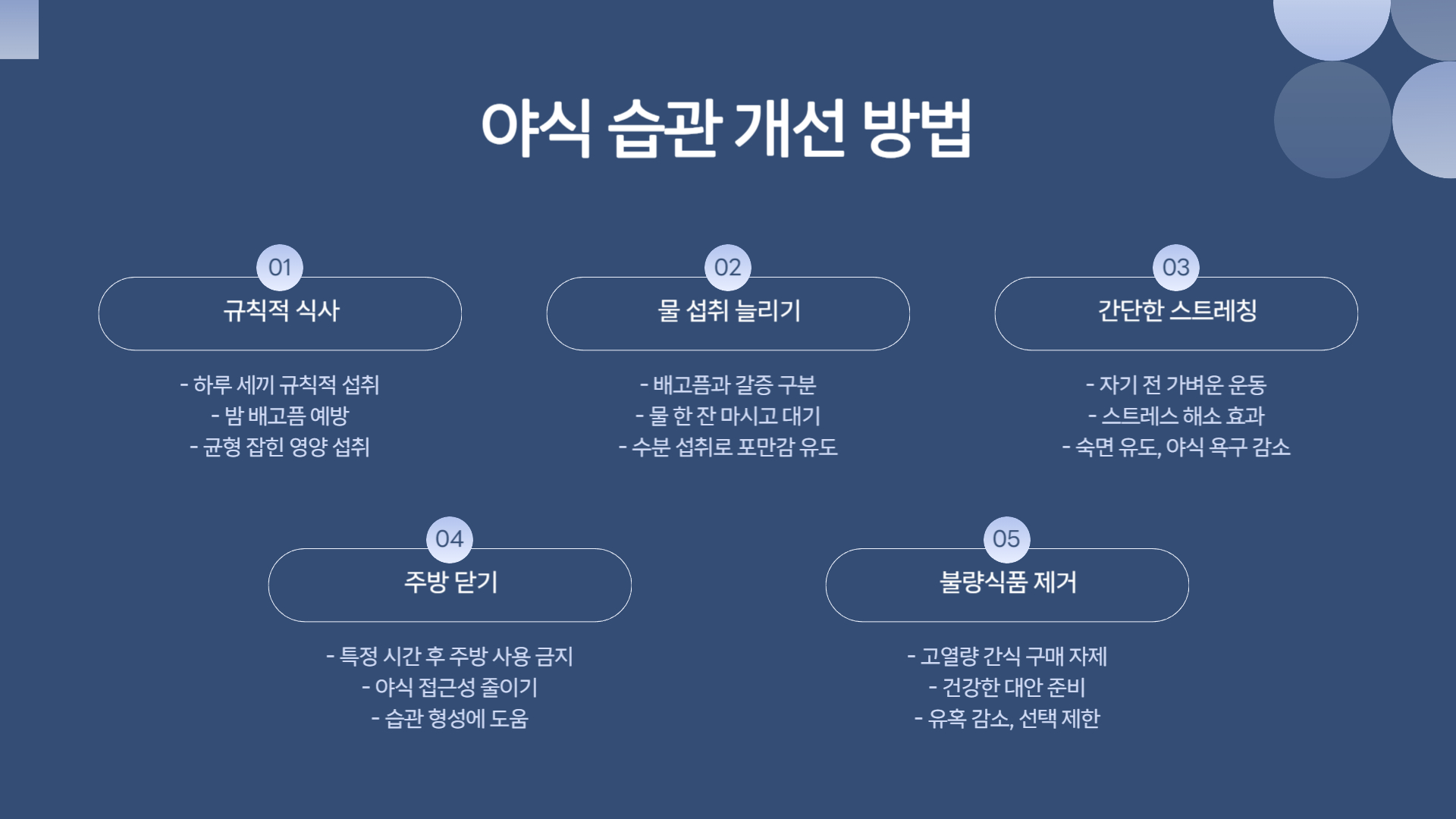 - 야식을 줄이는 데 도움이 되는 팁