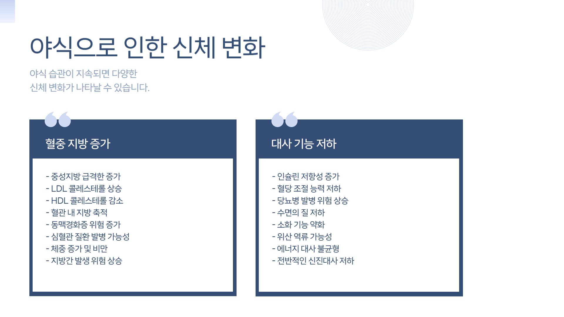 - 야식이 고지혈증에 미치는 영향
