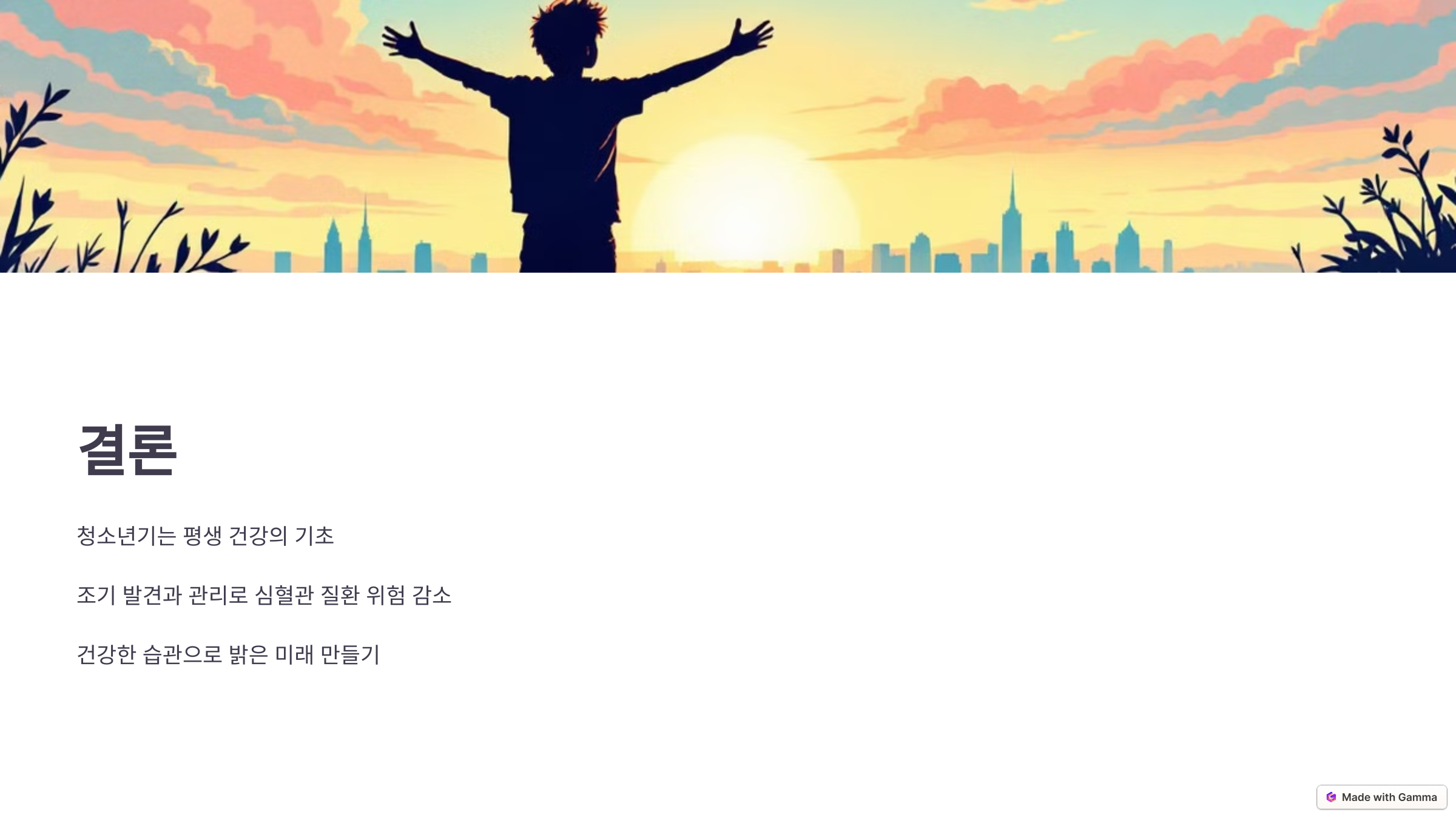 - 부모의 역할이 중요하므로 가족 차원의 건강 관리가 필요합니다.